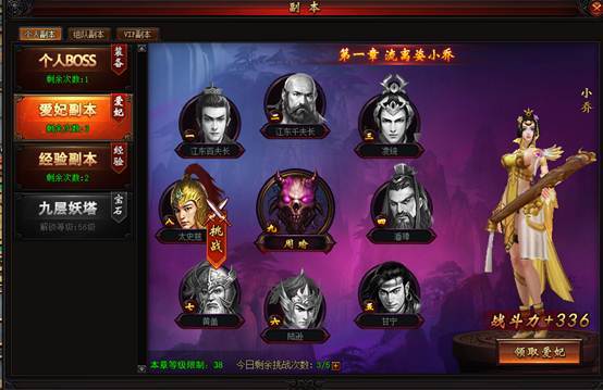 开放条件:玩家达到42级开放爱妃副本。每日可挑战5次