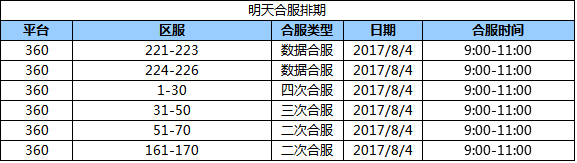 注:所有开合服活动若有临时变更,请以游戏内为准!