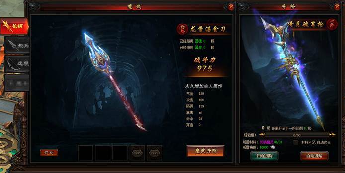 可对魔武进行升级,需消耗升级材料,通过副本大厅内的魔武副本、VIP副本可获得升级材料,魔武升级可增加角色属性 。