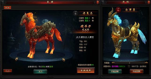 升阶坐骑都可以获得更多炫酷的坐骑外型。