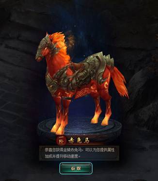 玩家完成主线任务后,可免费获得第一匹坐骑“赤兔马”。